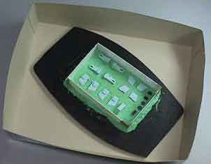 空き箱の中に完成した原型を入れます。 型を崩さないように、注意しましょう。 |